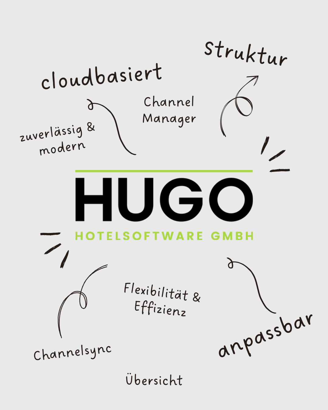 Die HUGO Hotelsoftware ist eine innovative, cloudbasierte Software für Hotels, Apartments und andere Beherbergungsbetriebe, die ihre Abläufe digital, effizient und zukunftssicher gestalten möchten.